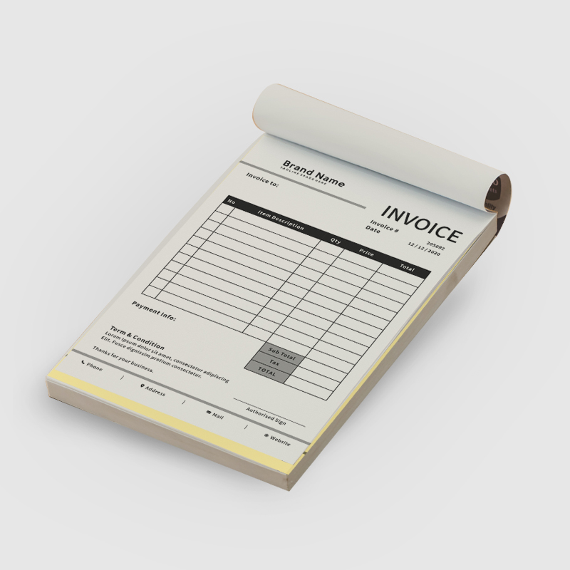 2-part NCR Form Pads are an efficient way to provide multicolored copies of a single document with handwritten or typed information—order forms, receipts, and more. Our 2-Part NCR Form Pads are digital printed as collated sets of white, canary on 20lb stock, glued on the short edge, with up to four customizable numbering locations; wraparound cover is blank.